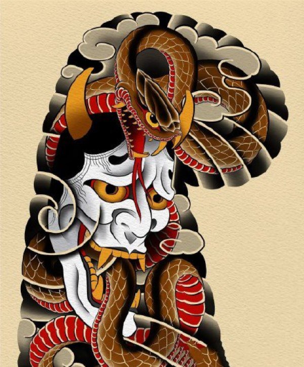 一组满背大气九龙拉棺纹身图案作品和手稿
