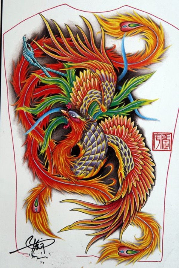 40组凤凰主题的纹身手稿图片欣赏