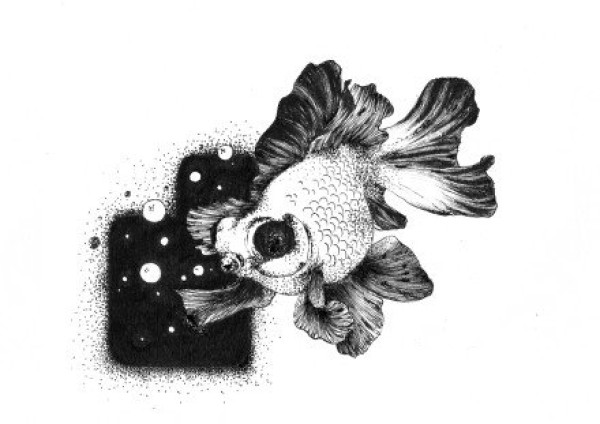 黑白色的一组创意小鱼纹身手稿图