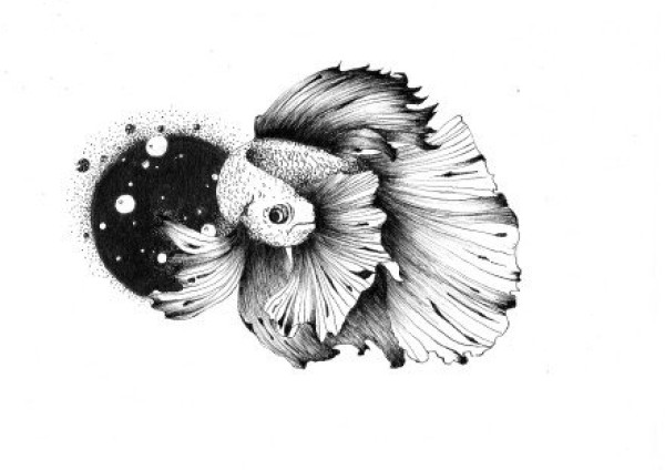 黑白色的一组创意小鱼纹身手稿图