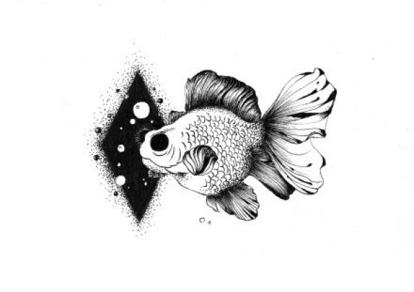 黑白色的一组创意小鱼纹身手稿图