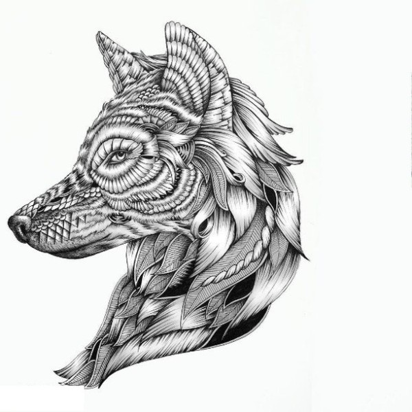半甲唐狮手稿 传统的9款唐狮主题半甲纹身手稿图片