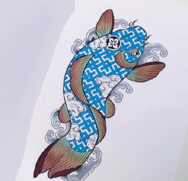 传统的30款鲤鱼纹身手稿图片赏析