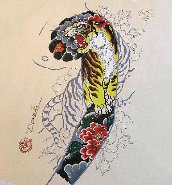 半甲唐狮手稿 传统的9款唐狮主题半甲纹身手稿图片