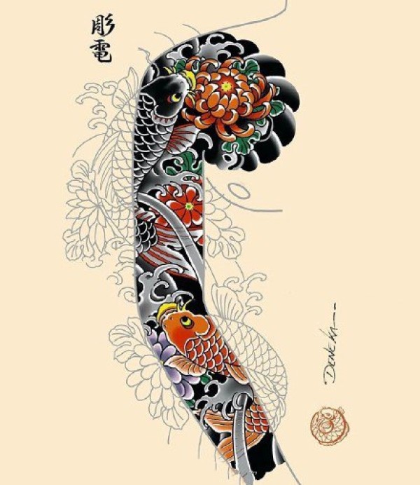 传统的30款鲤鱼纹身手稿图片赏析