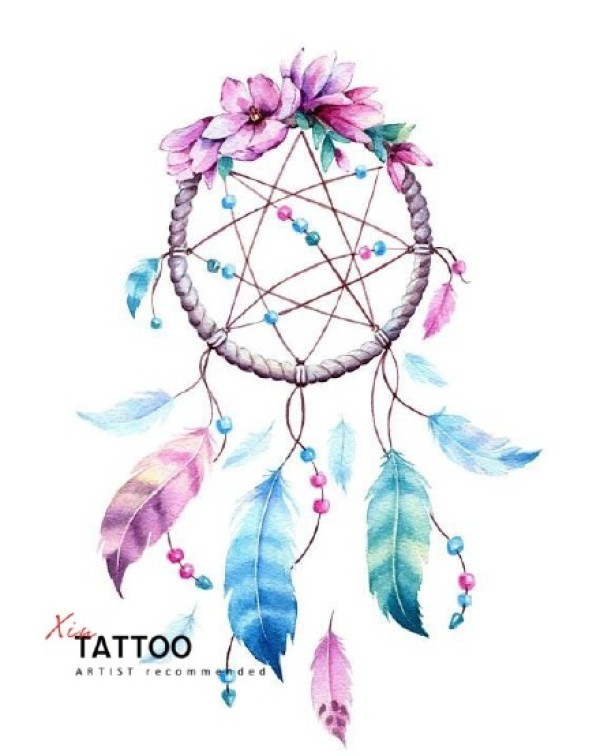 27组唯美漂亮的彩色补梦网纹身手稿图案