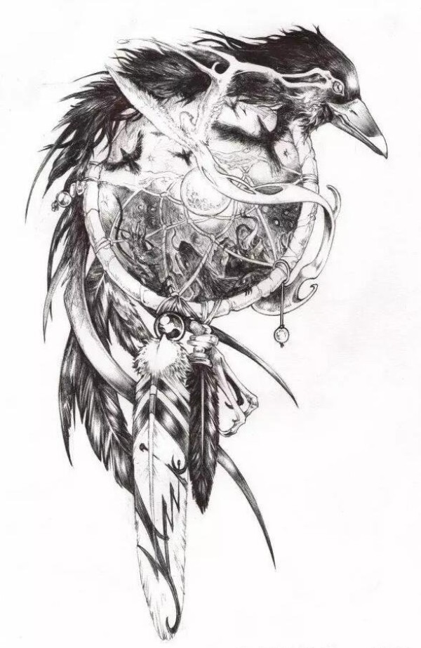 27组唯美漂亮的彩色补梦网纹身手稿图案