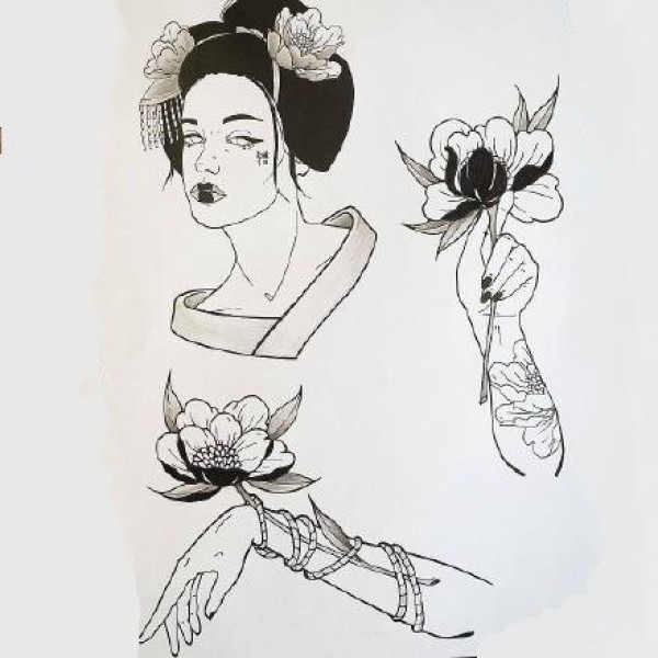 传统艺妓般若纹身图案手稿
