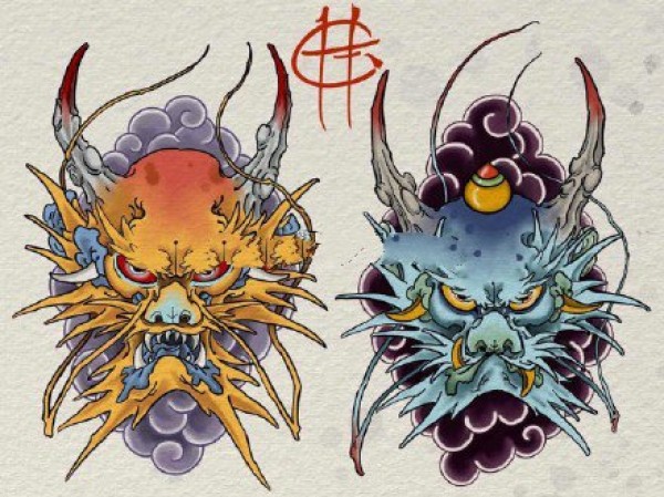 半甲唐狮手稿 传统的9款唐狮主题半甲纹身手稿图片
