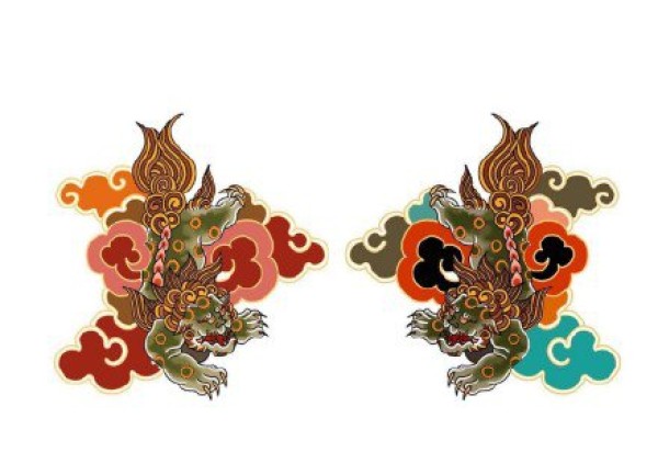 半甲唐狮手稿 传统的9款唐狮主题半甲纹身手稿图片