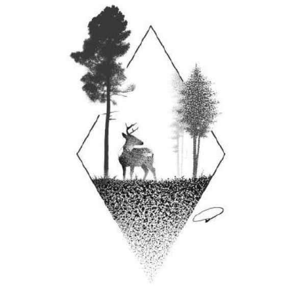 9张黑灰几何图形里的点刺小鹿纹身手稿图案