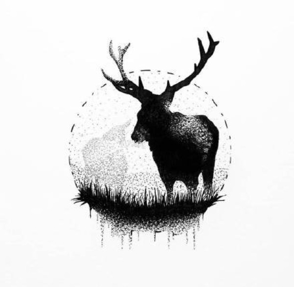 9张黑灰几何图形里的点刺小鹿纹身手稿图案