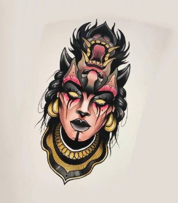 传统艺妓般若纹身图案手稿