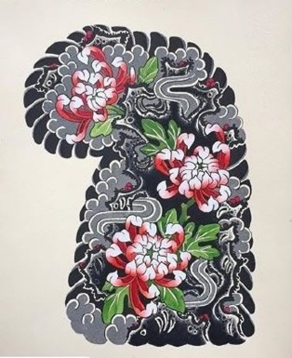 一组满背大气九龙拉棺纹身图案作品和手稿