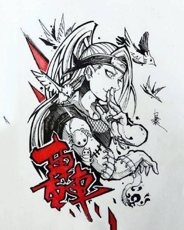 传统艺妓般若纹身图案手稿