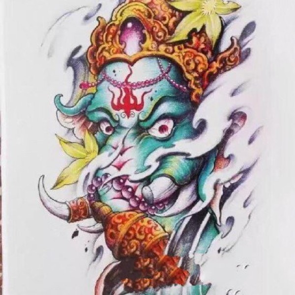 半甲唐狮手稿 传统的9款唐狮主题半甲纹身手稿图片