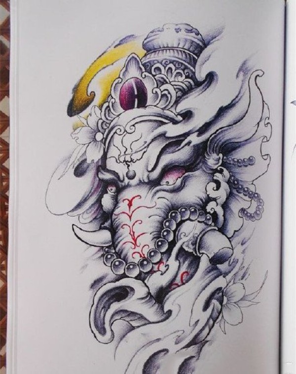 半甲唐狮手稿 传统的9款唐狮主题半甲纹身手稿图片