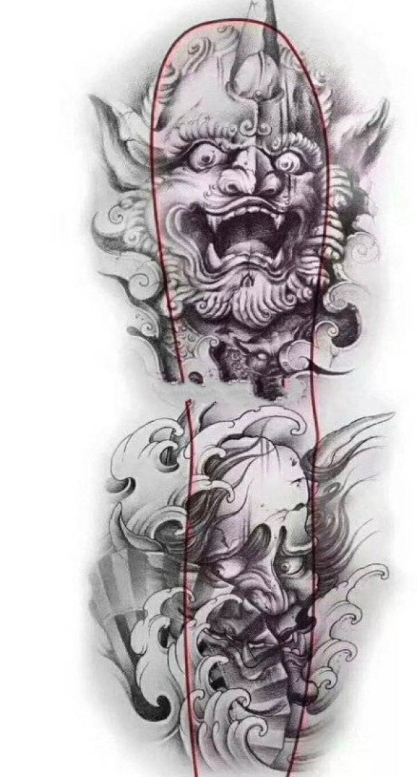 半甲唐狮手稿 传统的9款唐狮主题半甲纹身手稿图片