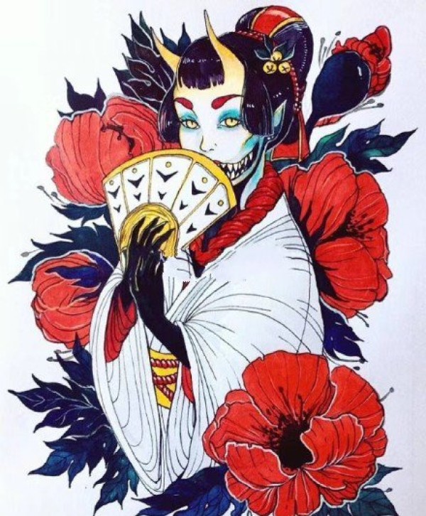 30组漂亮的彩色日式艺伎等传统纹身手稿图片