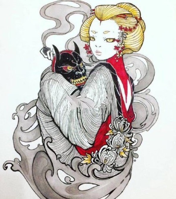 30组漂亮的彩色日式艺伎等传统纹身手稿图片