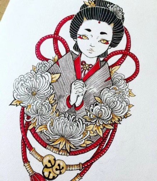 30组漂亮的彩色日式艺伎等传统纹身手稿图片