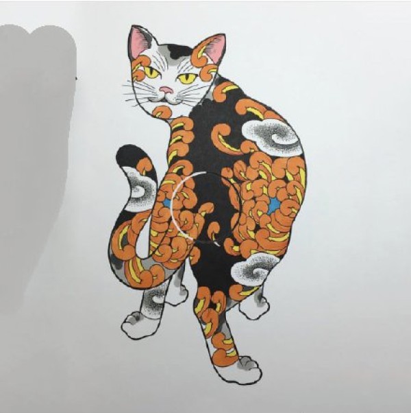 小清新猫头主题的一组猫神纹身素材手稿