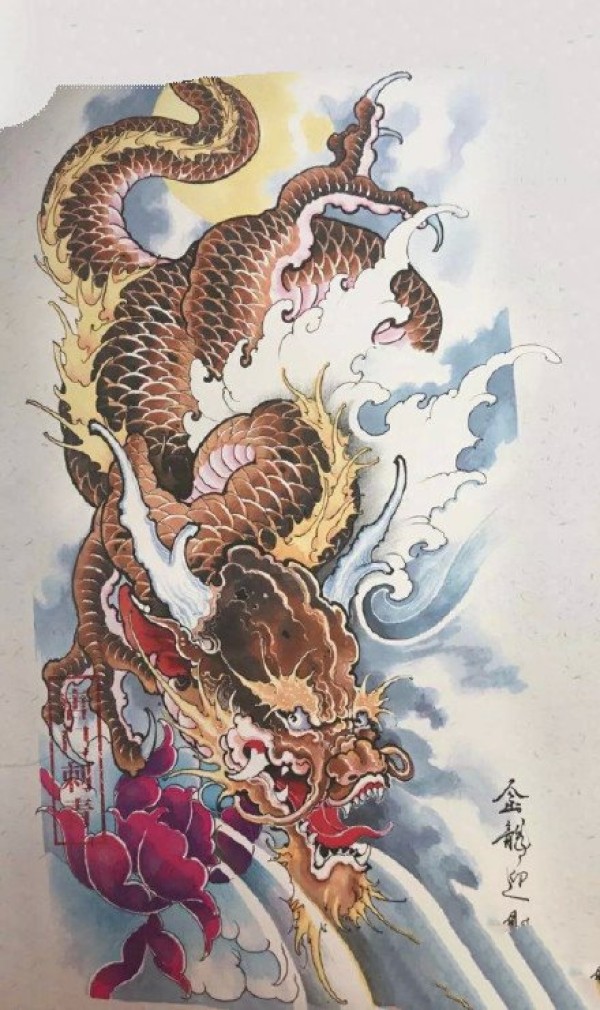 一组满背大气九龙拉棺纹身图案作品和手稿