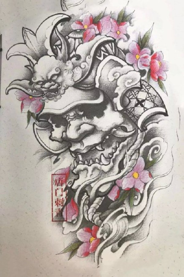 传统艺妓般若纹身图案手稿