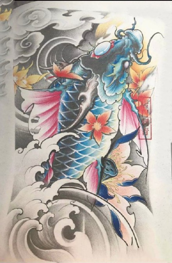传统的30款鲤鱼纹身手稿图片赏析