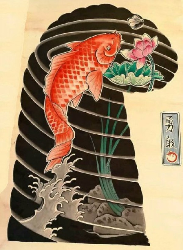 传统的30款鲤鱼纹身手稿图片赏析