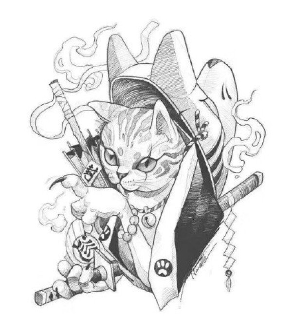 小清新猫头主题的一组猫神纹身素材手稿
