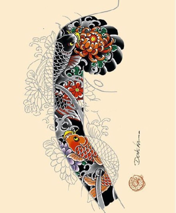 传统的30款鲤鱼纹身手稿图片赏析