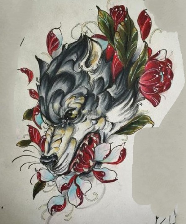 半甲唐狮手稿 传统的9款唐狮主题半甲纹身手稿图片