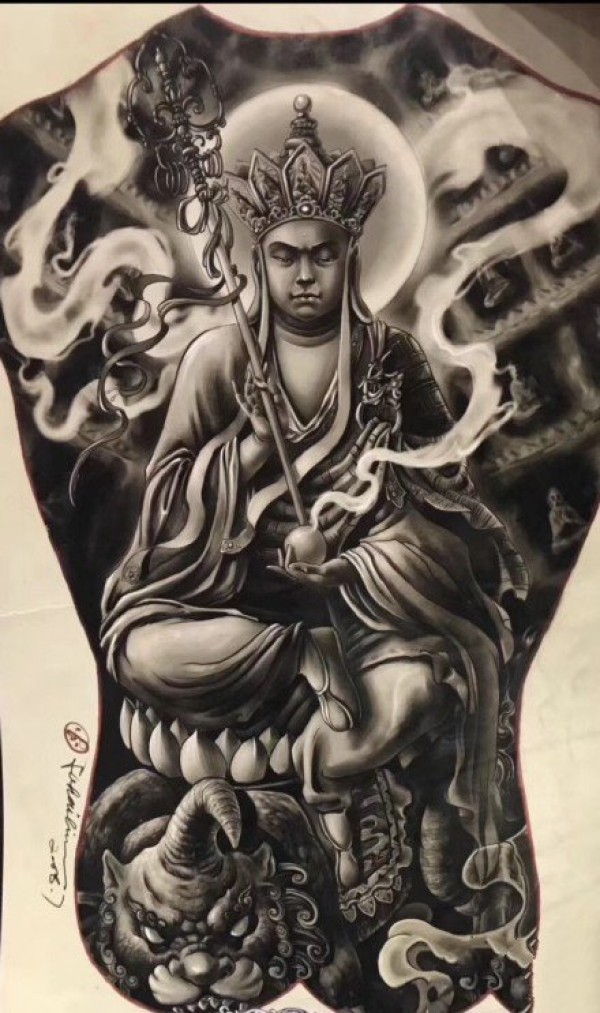 一组满背大气九龙拉棺纹身图案作品和手稿