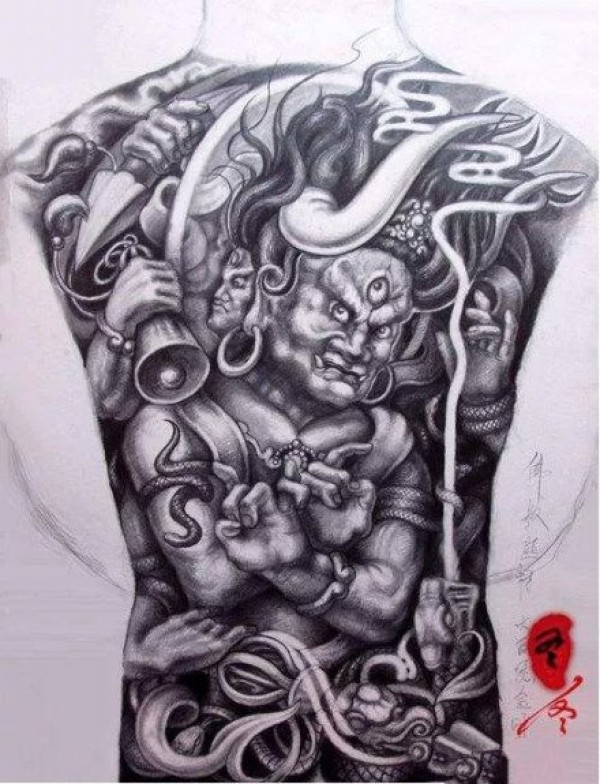10组传统满背的纹身手稿图片欣赏