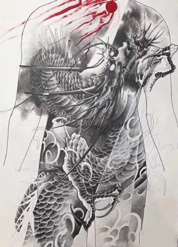 10组传统满背的纹身手稿图片欣赏