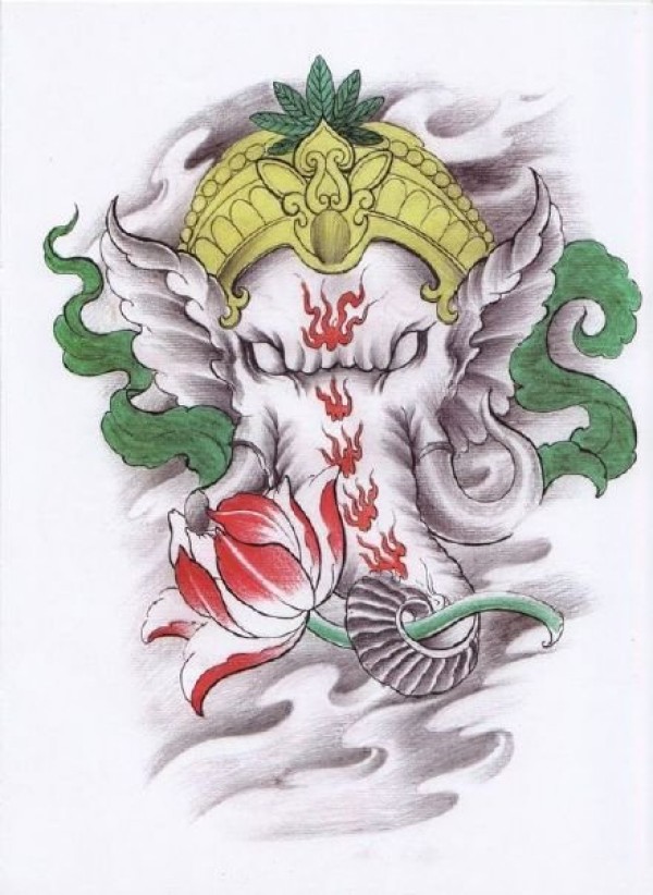 半甲唐狮手稿 传统的9款唐狮主题半甲纹身手稿图片