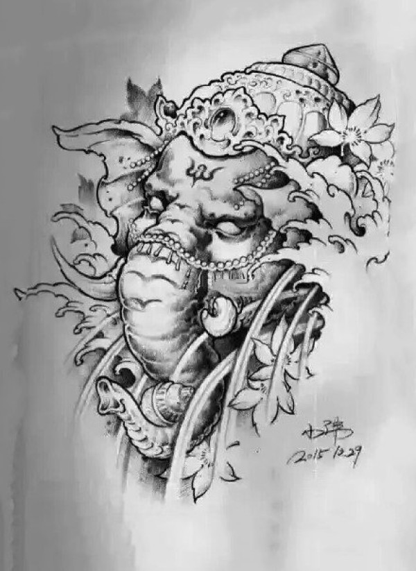 半甲唐狮手稿 传统的9款唐狮主题半甲纹身手稿图片