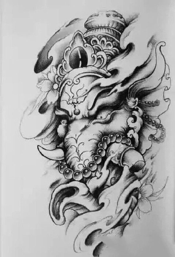 半甲唐狮手稿 传统的9款唐狮主题半甲纹身手稿图片