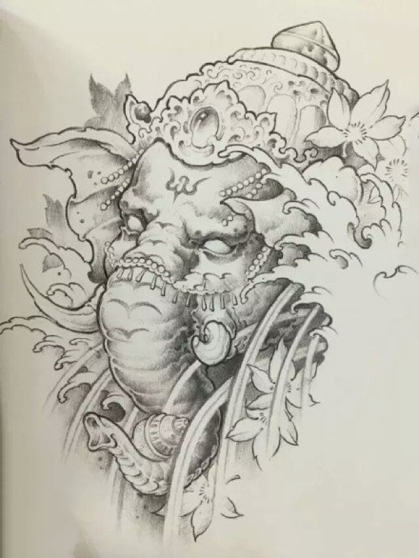 半甲唐狮手稿 传统的9款唐狮主题半甲纹身手稿图片