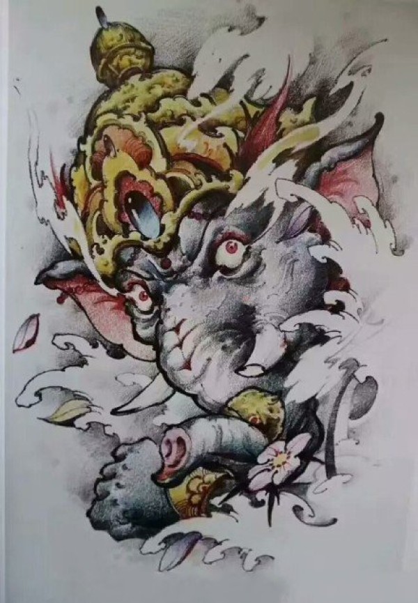 半甲唐狮手稿 传统的9款唐狮主题半甲纹身手稿图片