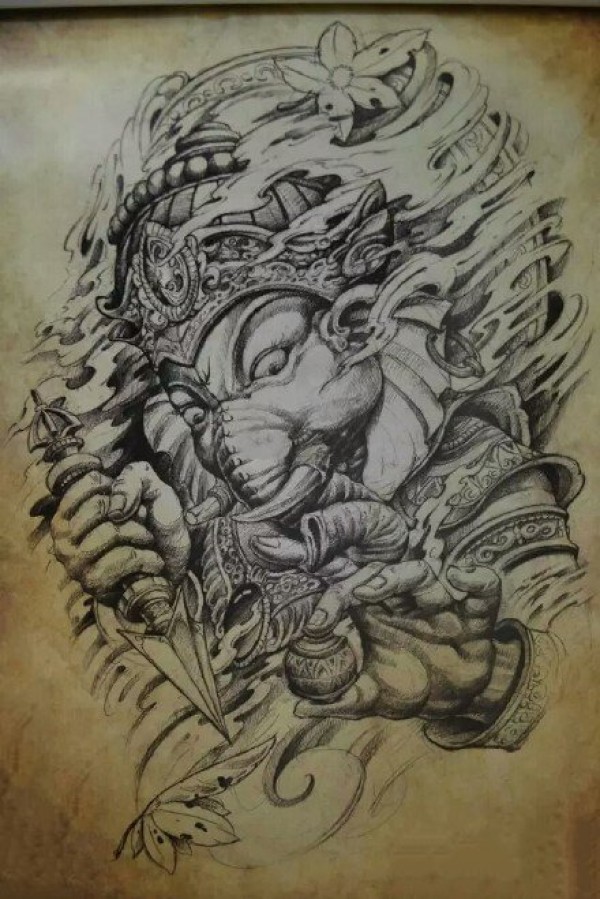 半甲唐狮手稿 传统的9款唐狮主题半甲纹身手稿图片