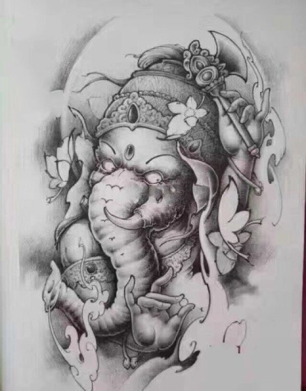 35组宗教传统的象神纹身手稿图片