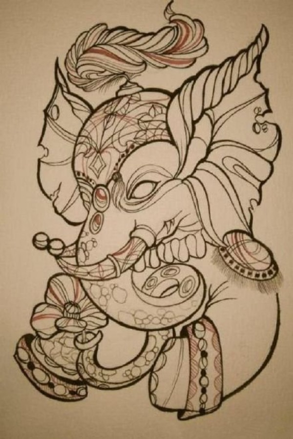 35组宗教传统的象神纹身手稿图片