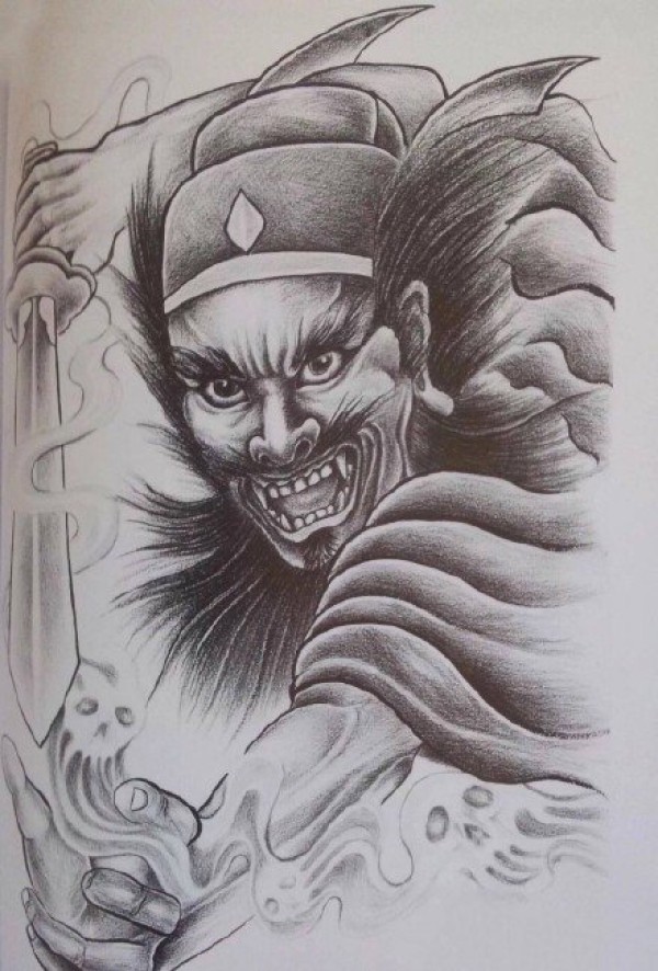 一组满背大气九龙拉棺纹身图案作品和手稿