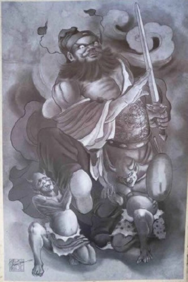一组满背大气九龙拉棺纹身图案作品和手稿