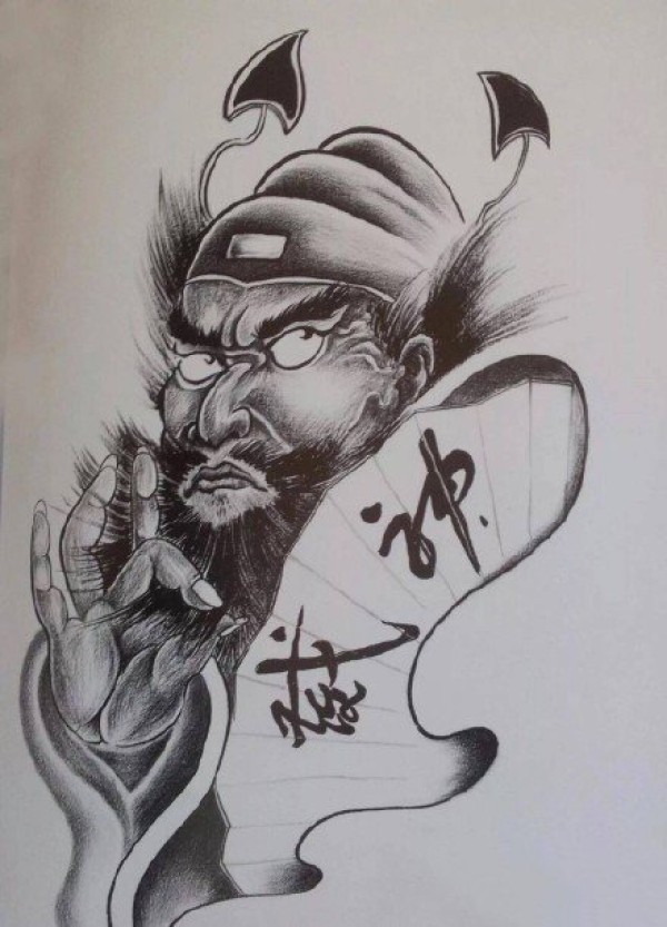 半甲唐狮手稿 传统的9款唐狮主题半甲纹身手稿图片