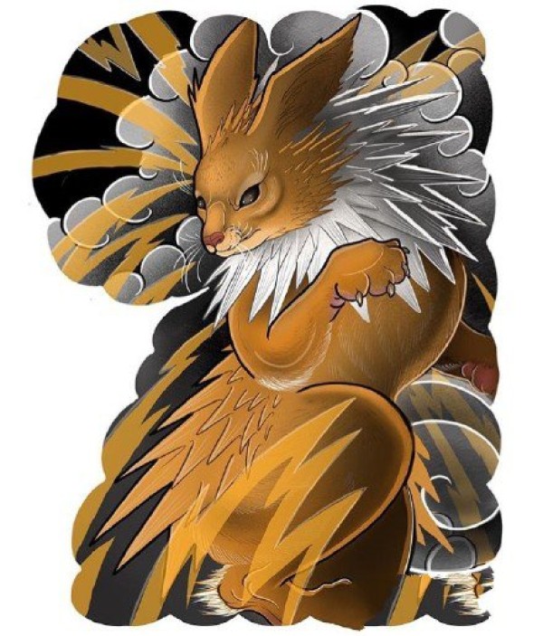 新传统风格的半甲宠物小精灵纹身图片手稿