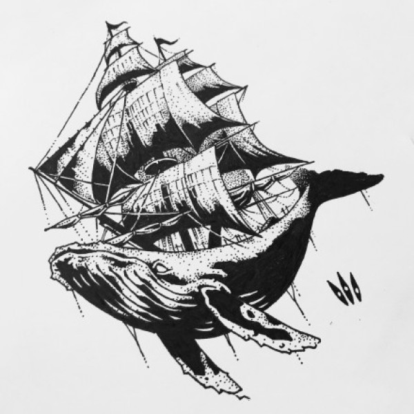 32组黑灰色的鲸鱼主题纹身手稿图