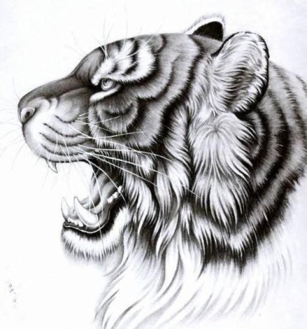 30组帅气的老虎头纹身手稿图片